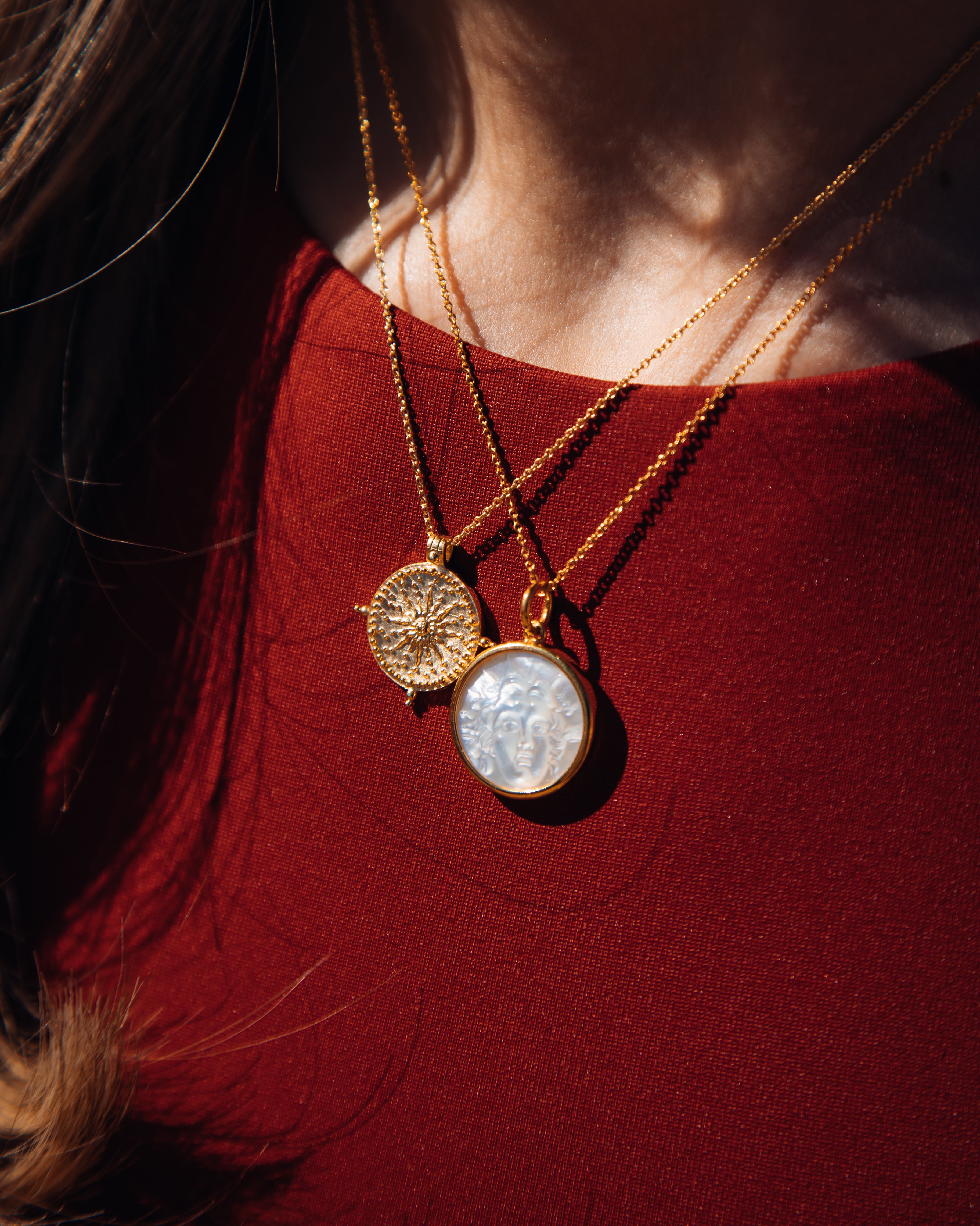 Our jewelry is sustainably made in Athens, Greece, using recycled sterling silver and thick layers of 24k gold vermeil. Each piece is handcrafted by local artisans using time-honored techniques passed down through generations.