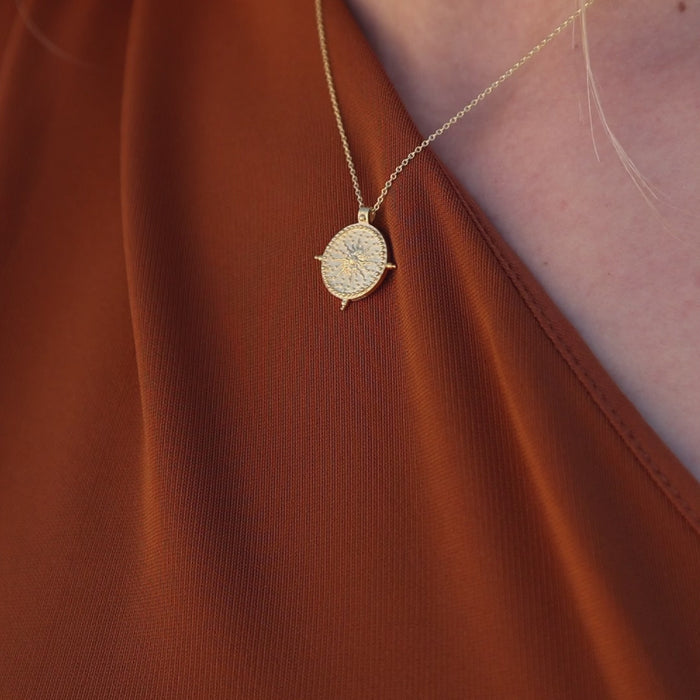 This radiant sun pendant is made using the ancient granulation technique, where tiny gold beads are hand-placed to create intricate texture and depth. Cast in sterling silver and richly finished with 24k gold vermeil, it glows with warmth and artisan detail.